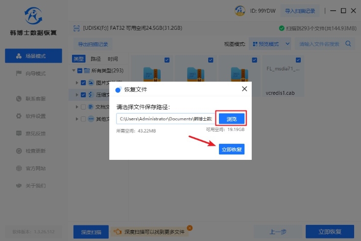 如果U盤只是出現了邏輯損壞,比如文件系統損壞或者分區丟失,那么我們可以使用數據恢復軟件來進行恢復。就拿韓博士數據恢復來說,它有快速、深度掃描的功能,幫我們找回丟失的文件。但在使用時,大家要注意: