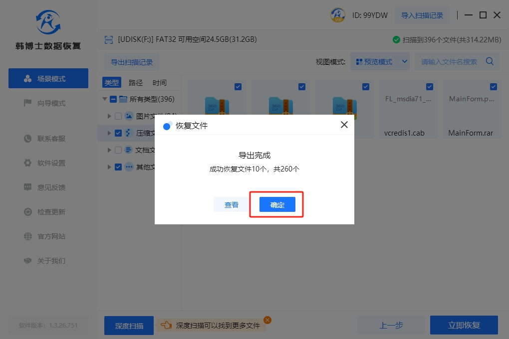 4. 掃描完成后,可以使用“預覽模式”來確認文件是否正確無誤。確認后,再勾選需要恢復的文件,然后點擊“立即恢復”。
