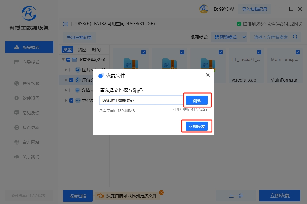 4. 數據掃描好了之后,馬上用“預覽模式”來檢查文件是否正確。然后,選中您想要恢復的文件,點擊“立即恢復”,開始數據的恢復流程。