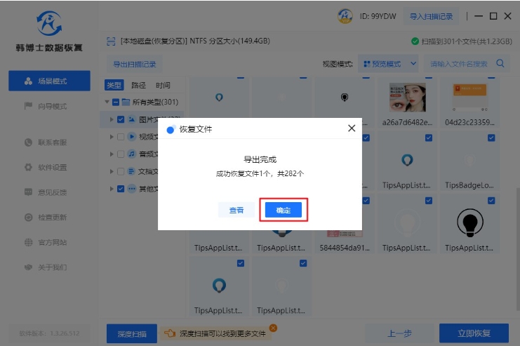 6. 來到了數(shù)據(jù)恢復的最后階段,點擊“確定”按鈕,這是韓博士成功完成整個恢復過程的最后一步。