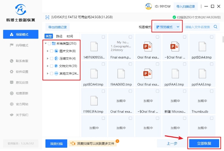 4. 文件掃描完成后,選擇“預(yù)覽”是一個關(guān)鍵步驟,用于判斷文件是否能夠成功恢復(fù)。確認(rèn)無誤,隨后再點(diǎn)擊“立即恢復(fù)”。
