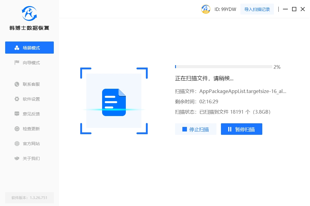 3. 韓博士正在進行文件掃描,請保持耐心等待。掃描完成后,勾選要恢復的文件,然后點擊“立即恢復”按鈕,即可順利完成數據恢復過程。
