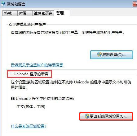 2.此時在打開的區域和語言窗口中,找到“管理”下的“更改系統區域設置”進入。