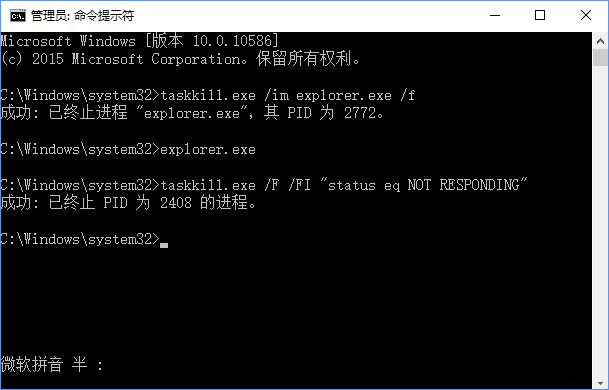 當(dāng)然,大家也可以直接終止所有的無響應(yīng)進(jìn)程,此時就需要執(zhí)行另外的命令: