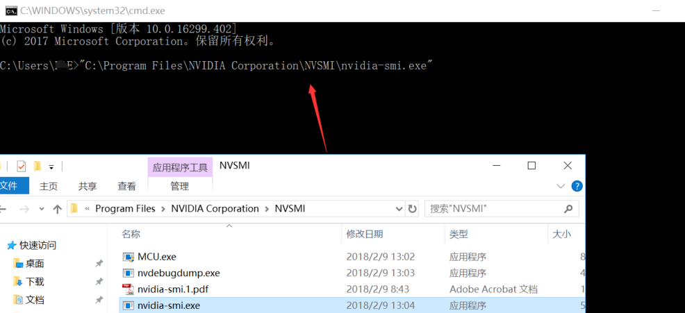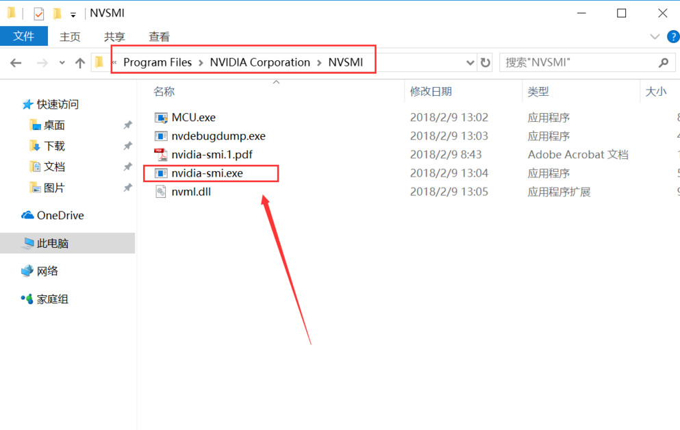5.直接將其中的nvidia-smi.exe文件拖至命令符窗口。
