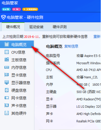 直接在硬件概況中點擊“電腦預覽”進入。