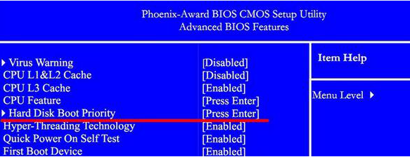3.開(kāi)始使用方向鍵找到并選擇“Hard Disk Boot Priority”選項(xiàng)回車,找到其中的“USB-HDD...”,最后按下“F10”保存設(shè)置。