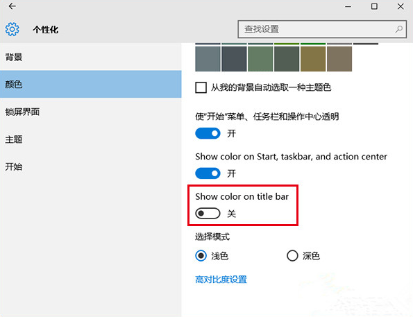2.直接將鼠標滑至最底部,開始關閉Show color on title bar(在標題欄顯示顏色)選項。