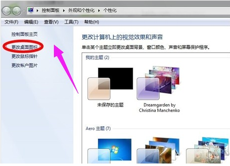 2.在打開的界面中點擊左側(cè)“更改桌面圖標”進入。