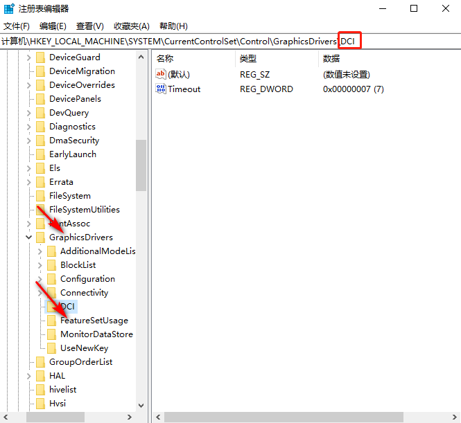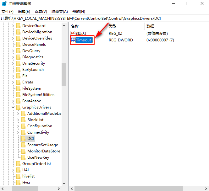 3.在DCI選項下找到右側的Timeout并雙擊打開。
