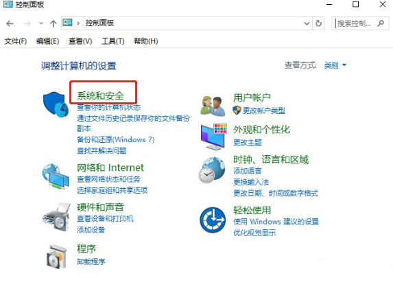 1.打開電腦中的控制面板界面,隨后選擇系統和安全進入。