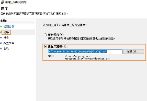 5.開始在程序中點擊瀏覽找到需要阻止聯網的程序。