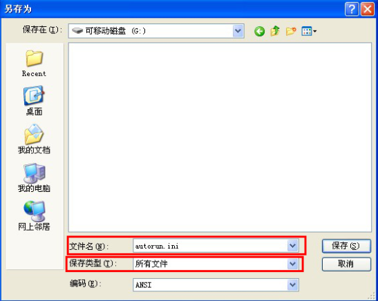 3.轉換好之后,名字一定得跟轉換后的程序名字一樣,直接保存在U盤中,類型要為所有文件。