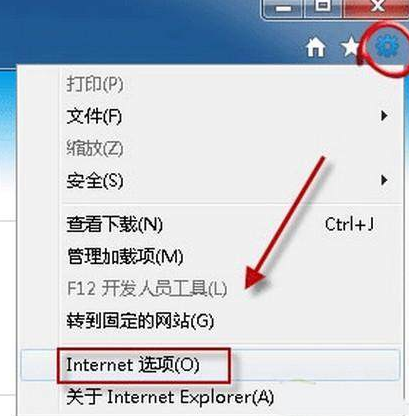 1.打開IE瀏覽器,找到右上角的設(shè)置圖標并選擇Internet選項進入。