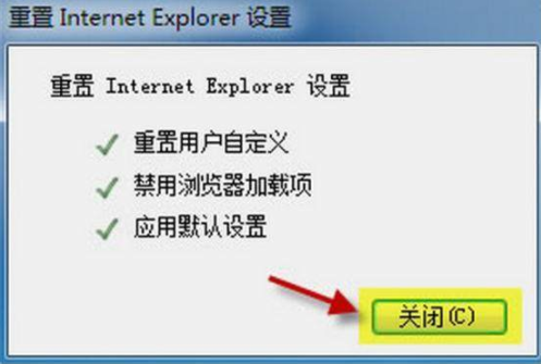 4.完成重置之后,點擊關(guān)閉窗口。