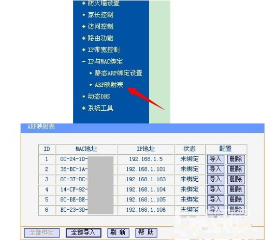 2.這時候就需要大家點擊界面中的ARP映射表進行查看路由器的IP地址段,及時進行記錄。