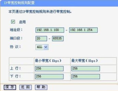 4.此步驟很重要,確保自己的ip可以避開該規則。如果設置地址段為192.168.1.2 - 192.168.1.253,自己的ip則為192.168.1.254,那么就可以基本控制他人網速了,端口段為20-65535即可。