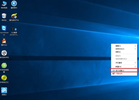 2.退出游戲,鼠標單擊桌面,選擇“顯示設置”。