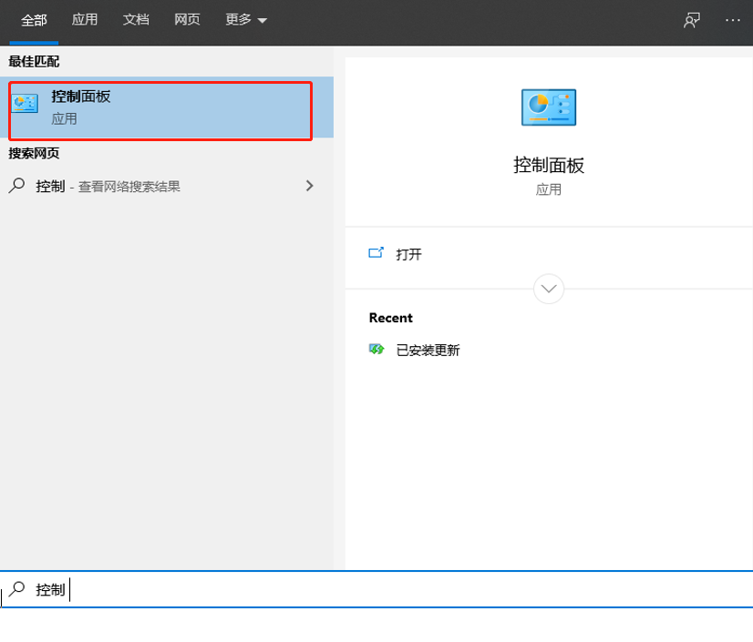 1.點擊電腦左下角的“搜索”,查找“控制面板”并打開。