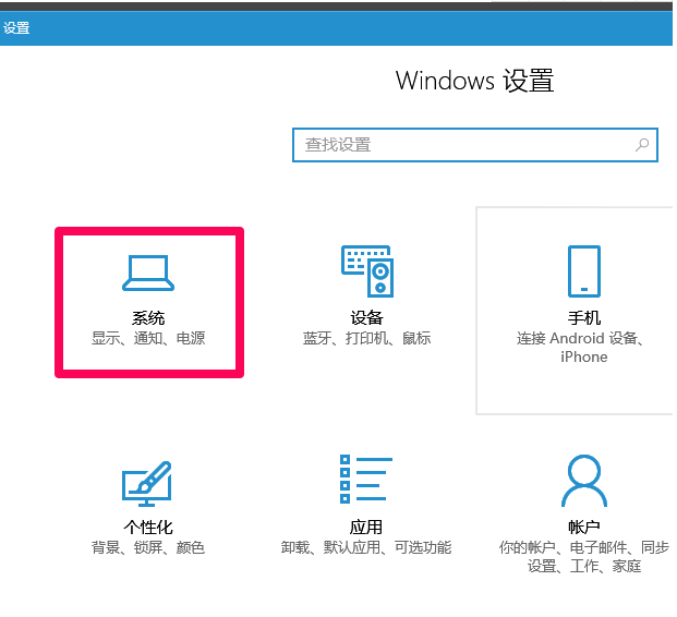 2. 在以下頁面點擊【系統】-顯示、通知、電源。