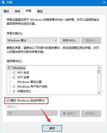 3.在打開的聲音小窗口下,直接勾選以下復選框,最后保存設置。