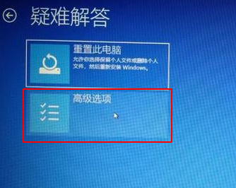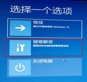 1.強制關機后開機,反復3次后在出現的界面中選擇查看高級修復選項下的疑難解答進入。