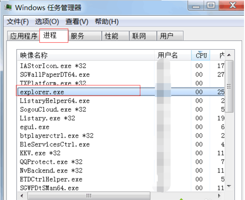 2.在“進程”選項卡中找到“explorer.exe”進程。