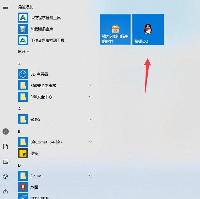3.打開開始菜單,可以看到剛剛添加的QQ程序了。
