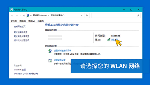 3.在“網(wǎng)絡(luò)和共享中心”界面中選擇您的無(wú)線網(wǎng)絡(luò)。