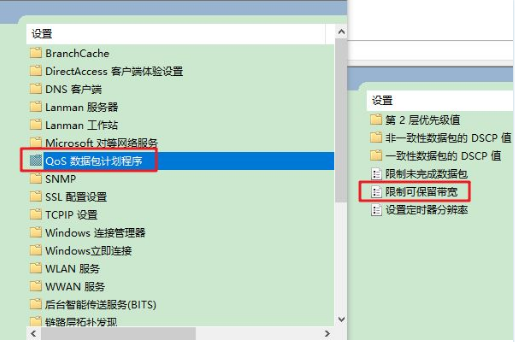 5.點擊『QoS 數據包計劃程序』,點雙擊『限制可保留寬帶』。