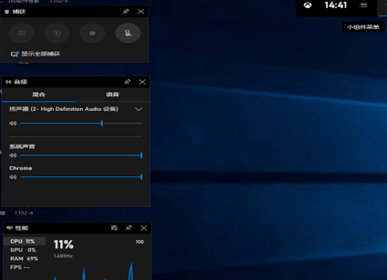 2. 工具欄彈出,在桌面左側有捕獲、音頻、性能這些功能。