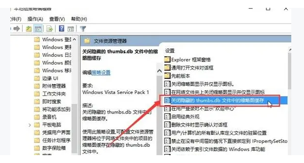3.找到并打開關閉隱藏的thumbs.db文件中的縮略圖緩存。
