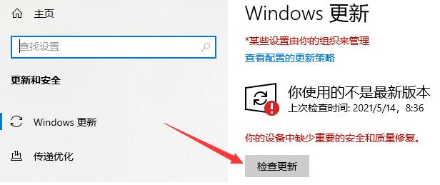 2、選擇“更新和安全”,在“Windows更新”中,點擊“檢查更新”,安裝最新版的系統試試。