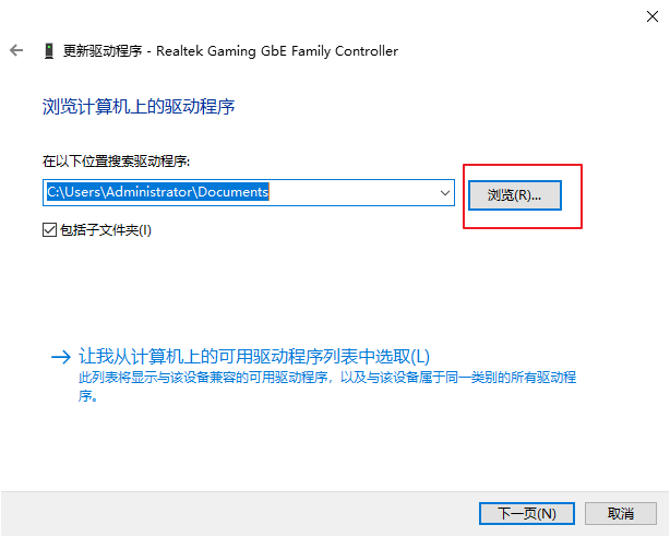 5、接下來點擊“瀏覽”,瀏覽位置直接找到光盤網卡驅動,然后進入“下一步”,系統就會自動進行安裝驅動啦。