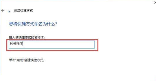 3、然后為快捷方式命名為“秒關程序”。