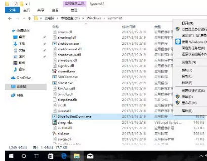 定位X:\Windows\System32文件夾目錄,找到“SlideToShutDown.exe”(X代表系統安裝盤)。