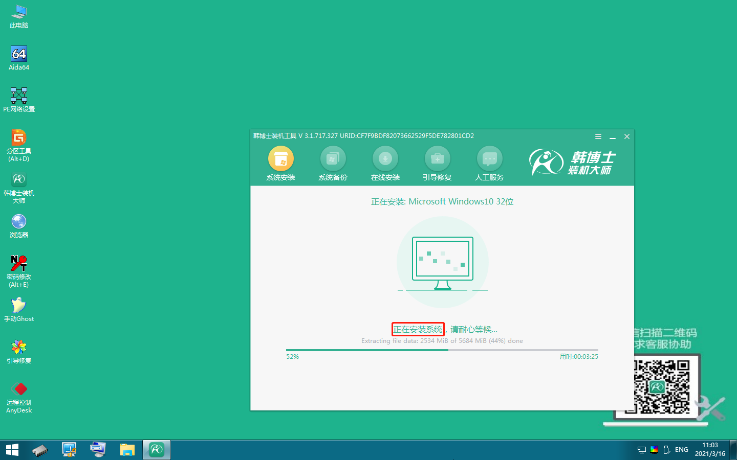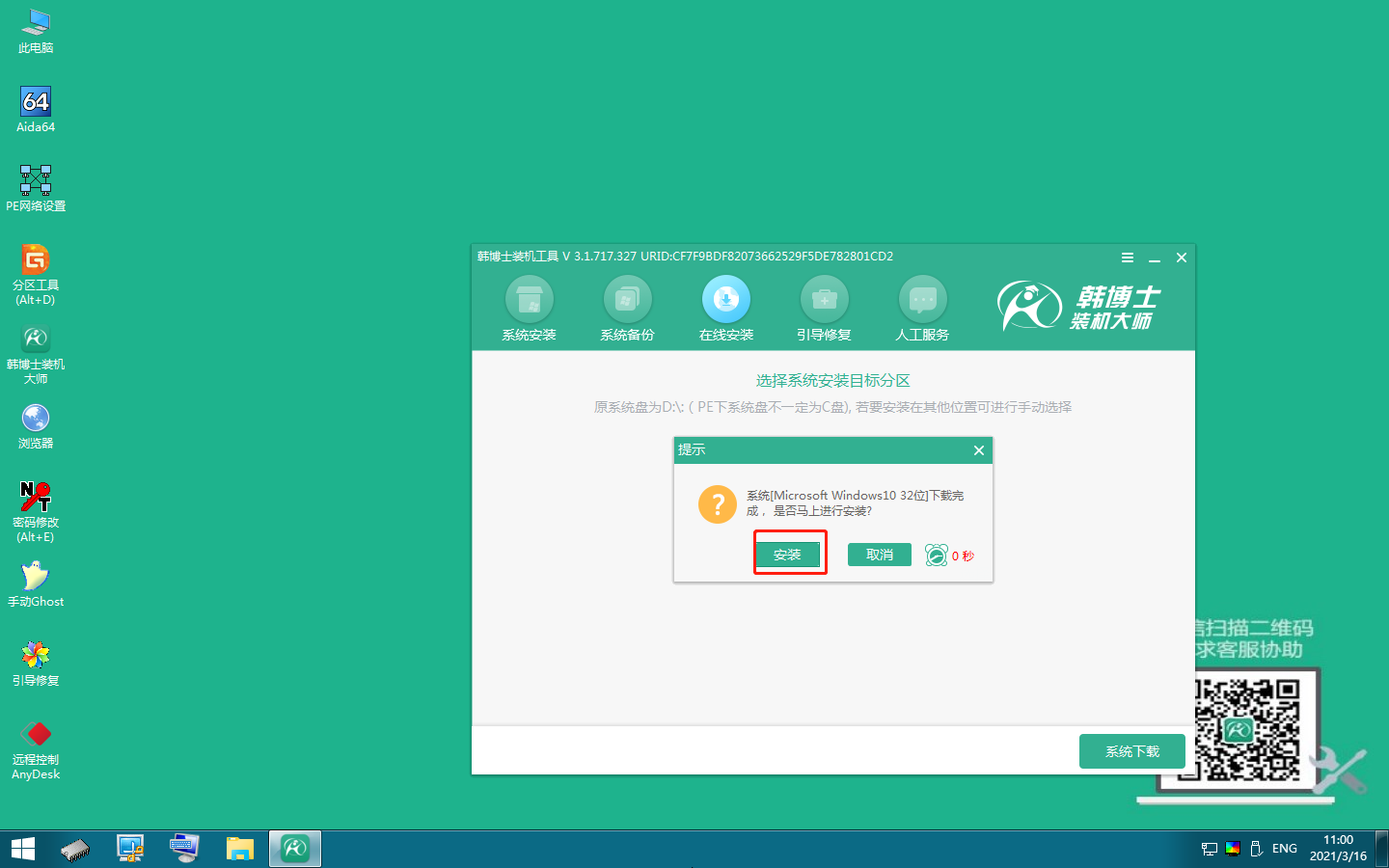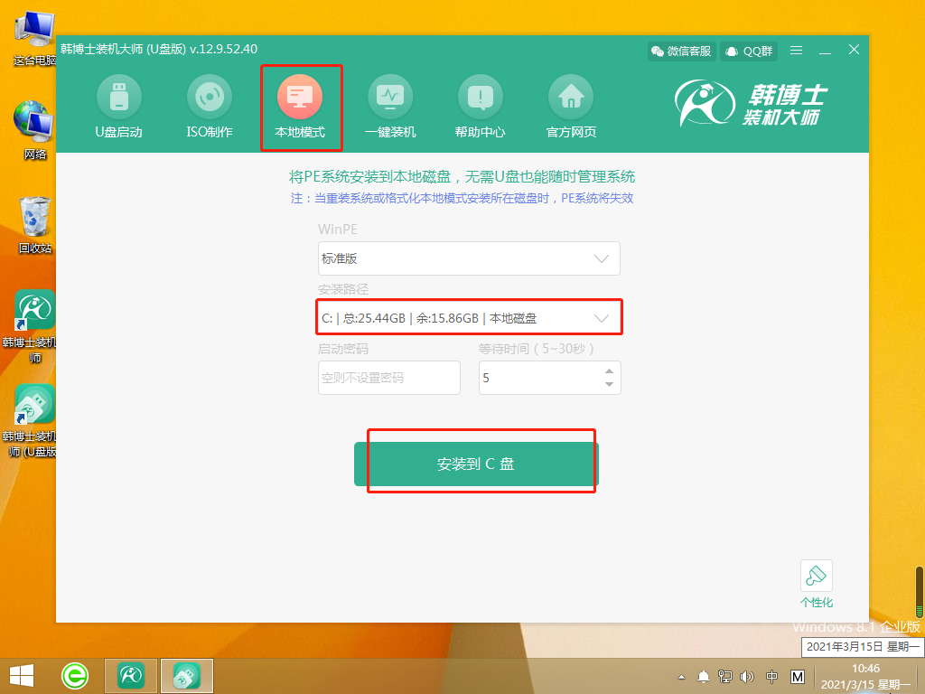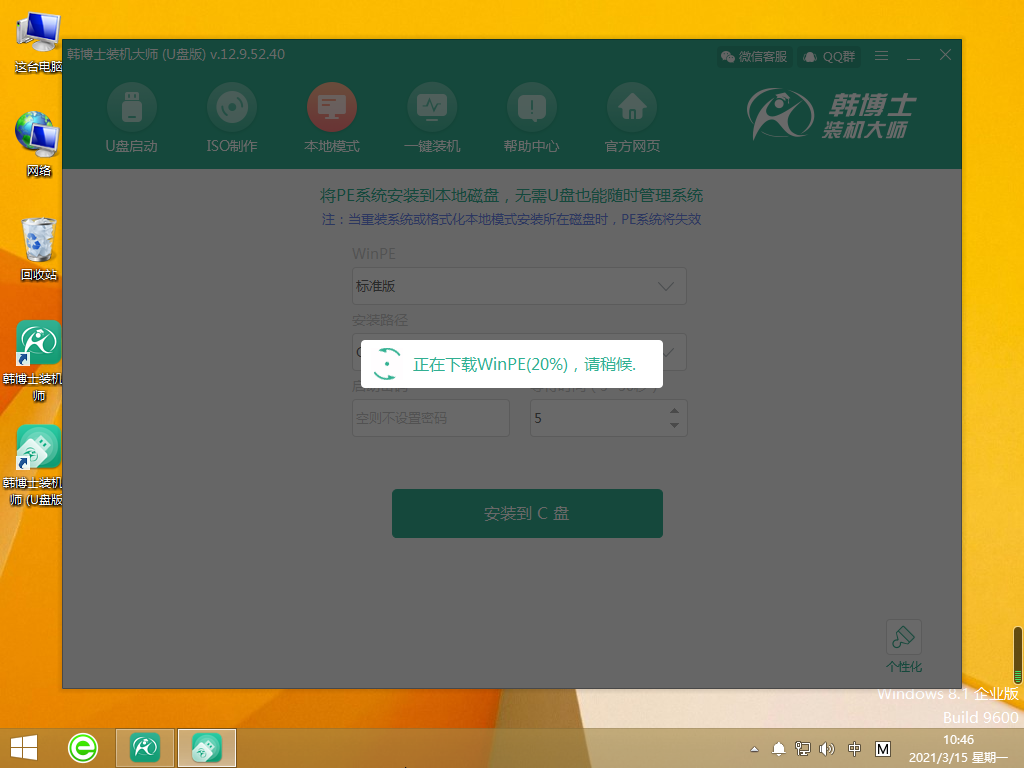 韓博士將下載PE鏡像文件,下載完成后,本地模式安裝完成。
