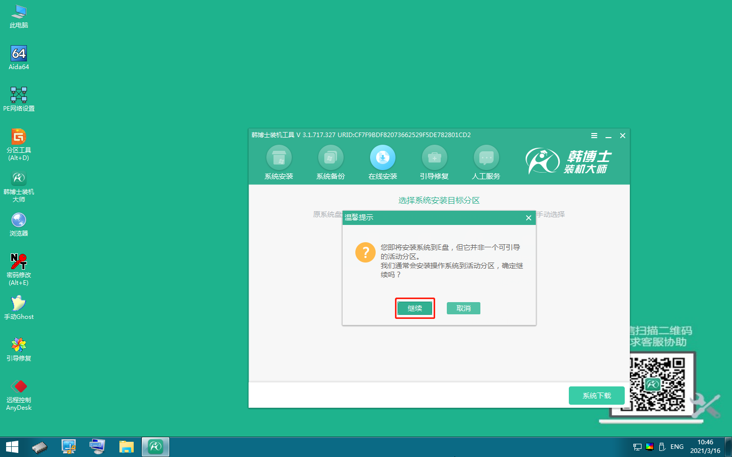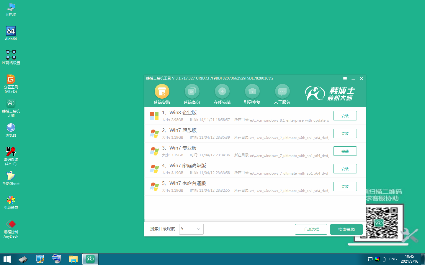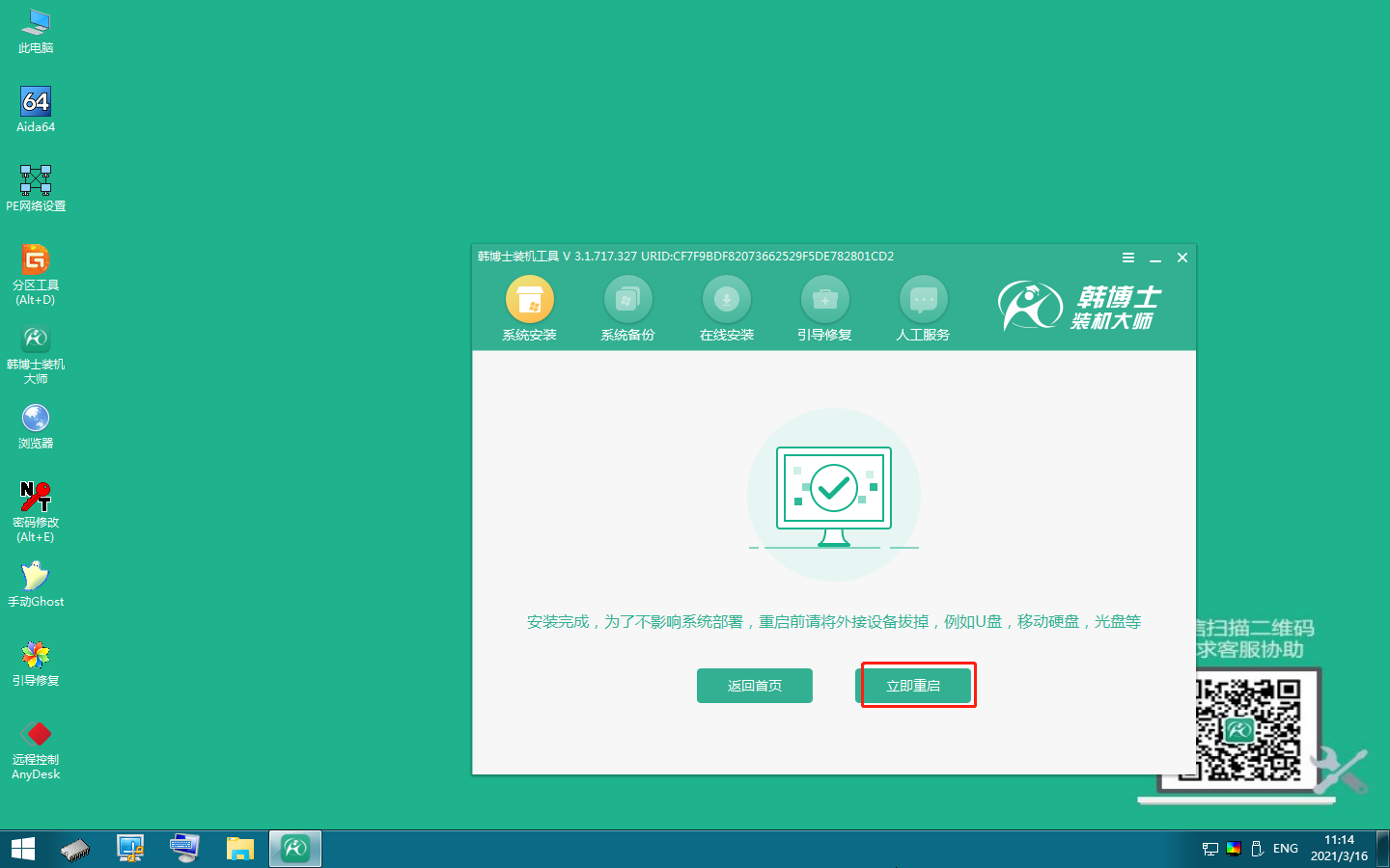 韓博士將下載PE鏡像文件,下載完成后,本地模式安裝完成。