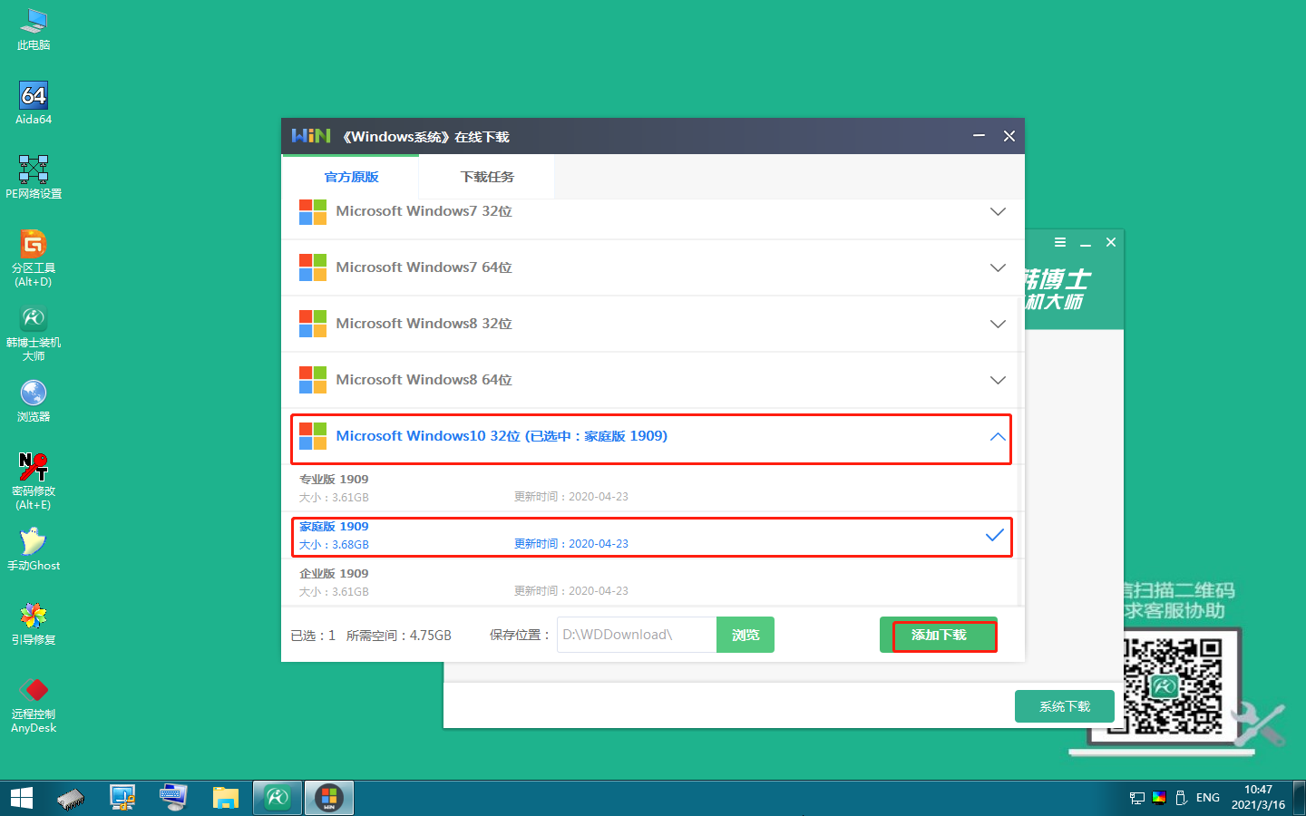 7.現在選擇我們需要下載的系統,點擊“添加下載”。