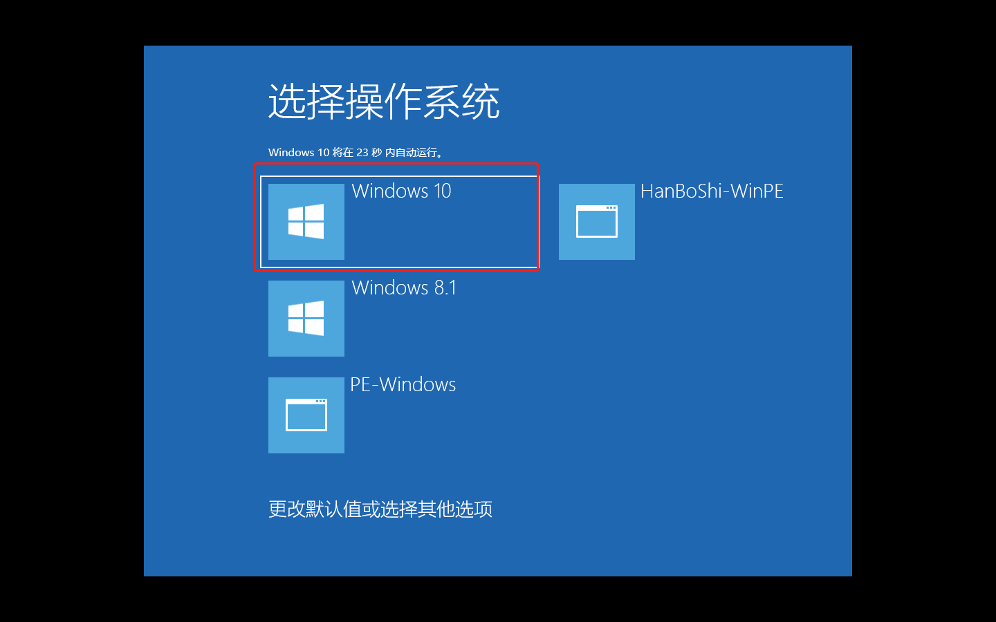 4.本地模式安裝完后,出現以下界面,使用鍵盤上的方向鍵,上下選中“HanBoShi-Win PE“,按回車鍵進入。