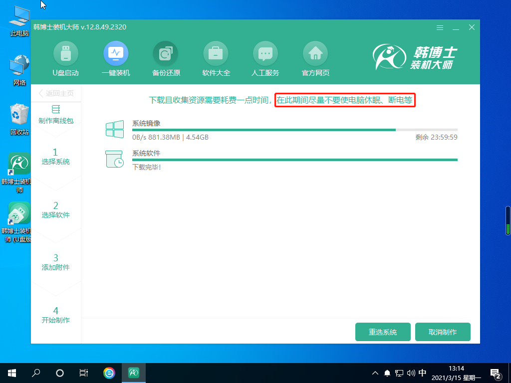 使用韓博士裝機大師下載離線安裝包的時候,關閉所有的殺毒工具