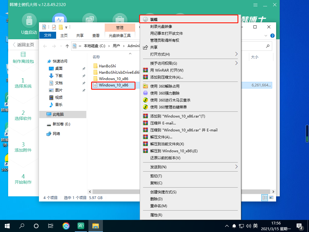 7.然后打開文件位置,右鍵選擇其中的鏡像文件,點擊“裝載”