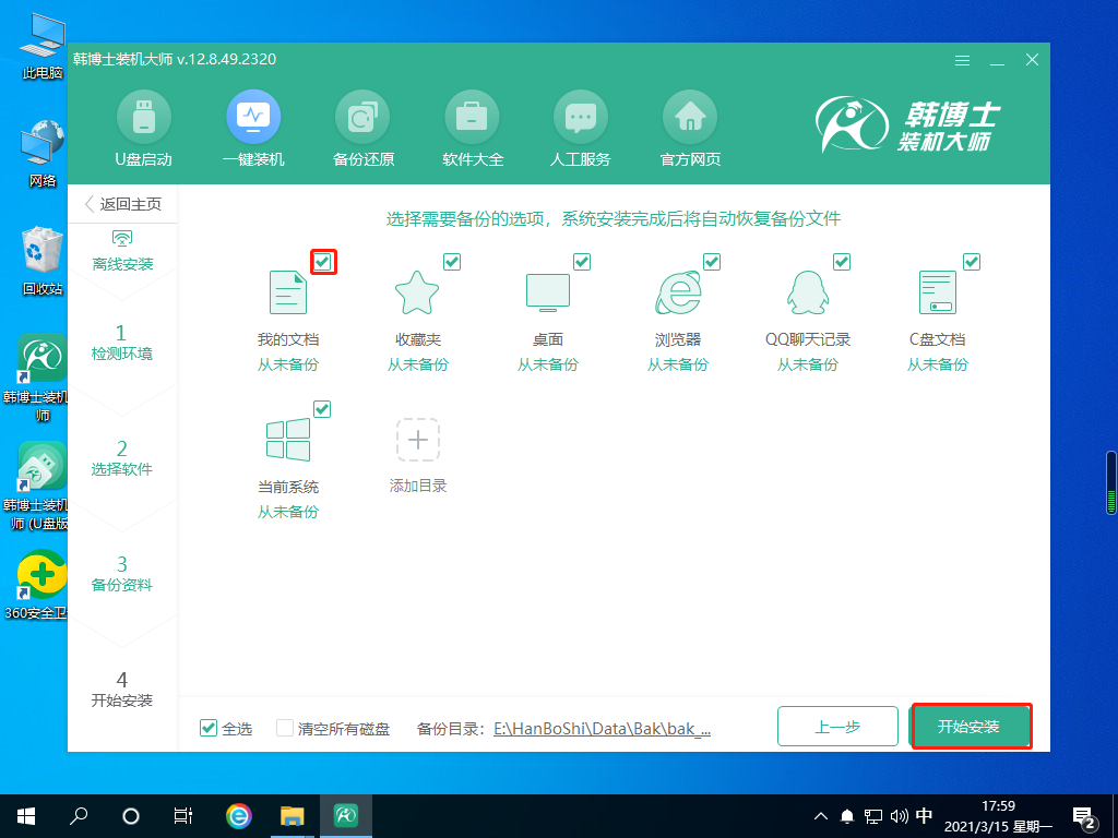 10.根據需要備份重要文件,點擊“開始安裝”繼續操作