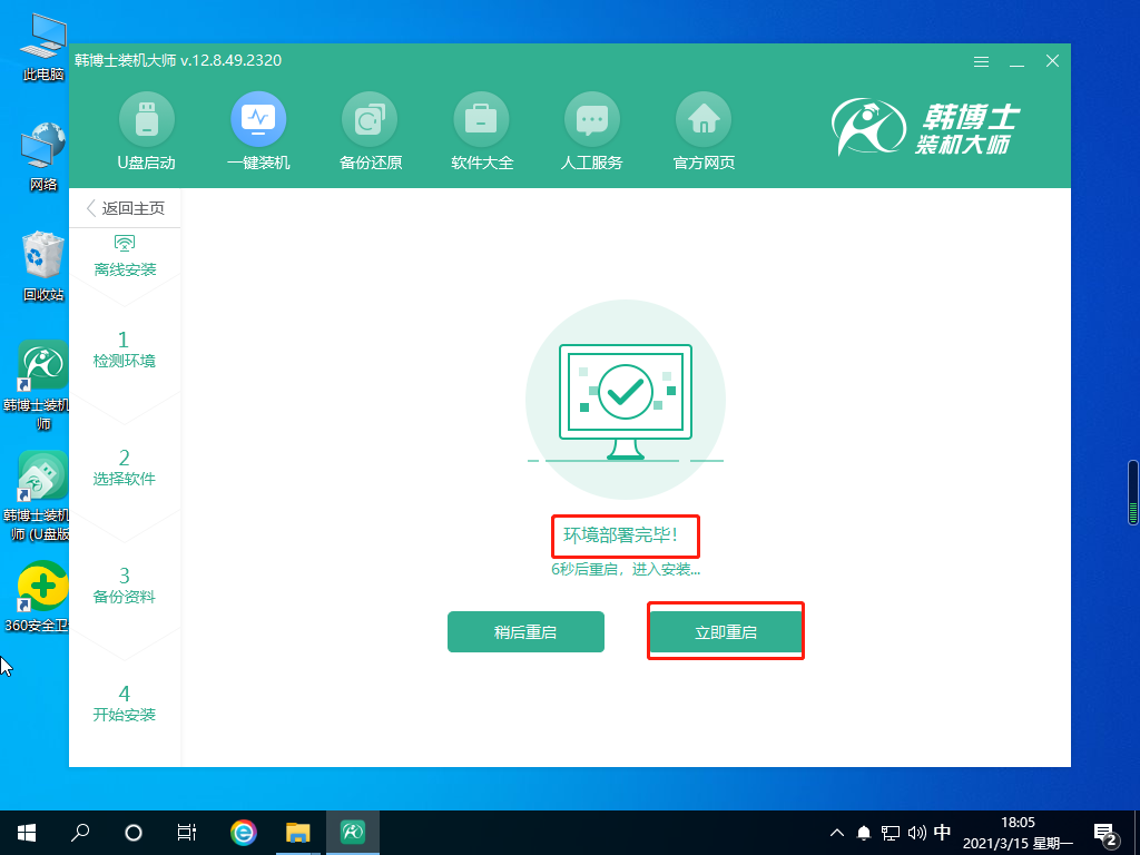 9.韓博士開始對電腦進行環境檢測,待電腦檢測完成,點擊“下一步”按鈕