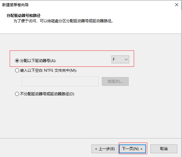8. 在分配以下驅動器號欄中,選擇任意一個盤符,點擊“下一步”繼續操作