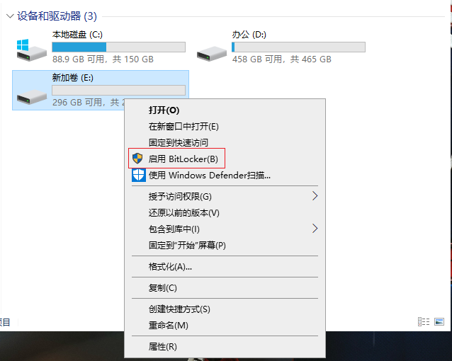2.鼠標右擊要加密的磁盤,選擇“啟用BitLocker(B)”