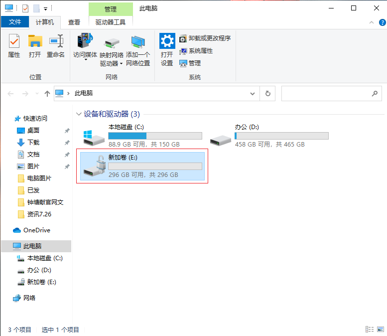1.在桌面雙擊打開“此電腦”,彈出以下界面后,找到要解密的磁盤