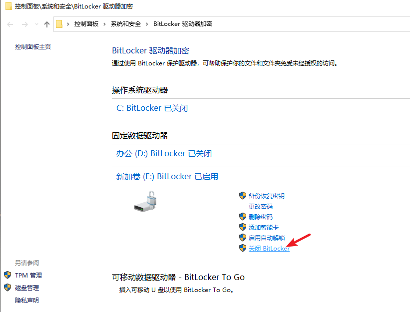 3.在彈出的界面中選擇“關閉BitLocker”按鈕