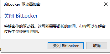 4.在以下界面中點擊“關閉BitLocker”按鈕,等候解密完成即可