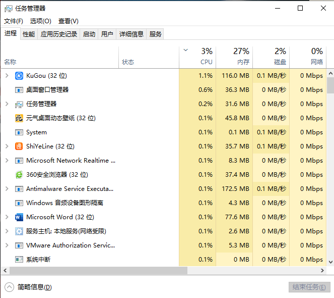 1.按下Ctrl+shirt+esc,打開任務管理器。